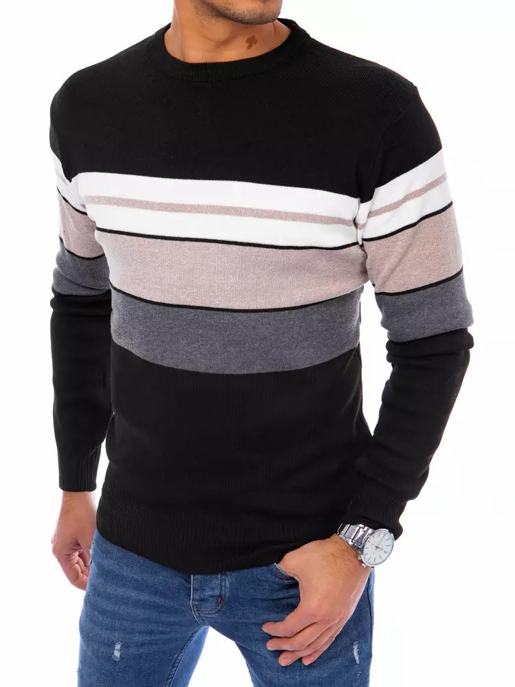Dstreet Elegantní černý svetr s pruhy