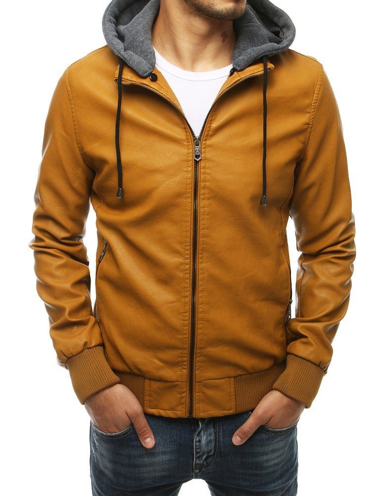 Dstreet Kamelová koženková bunda s praktickou kapucňou