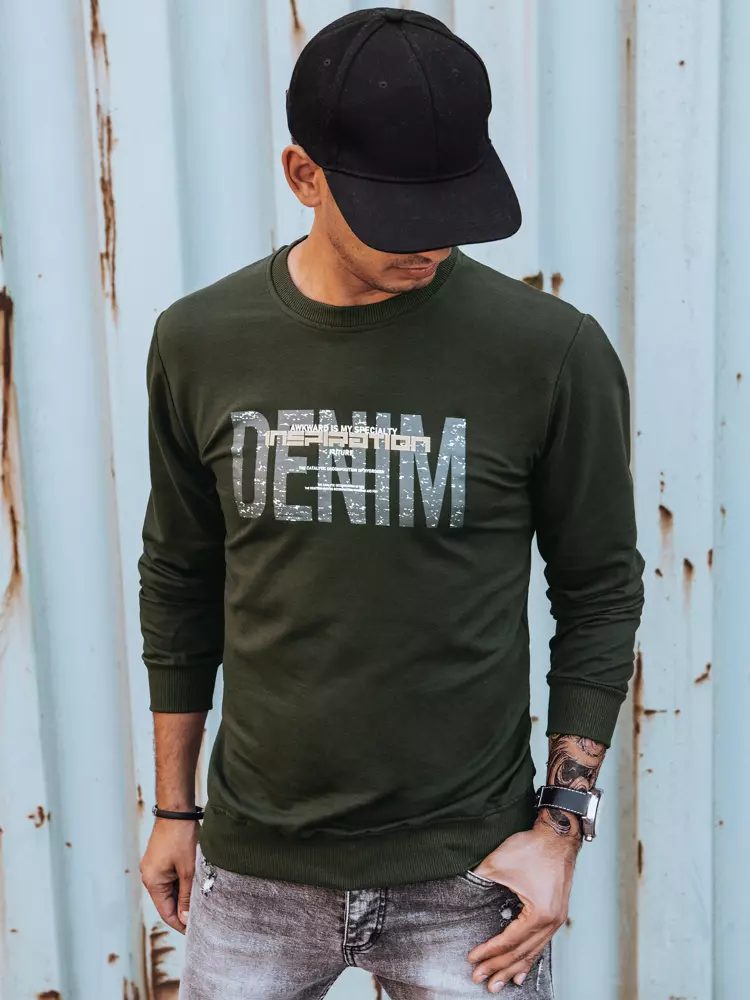 Dstreet Khaki mikina bez kapuce s potiskem Denim