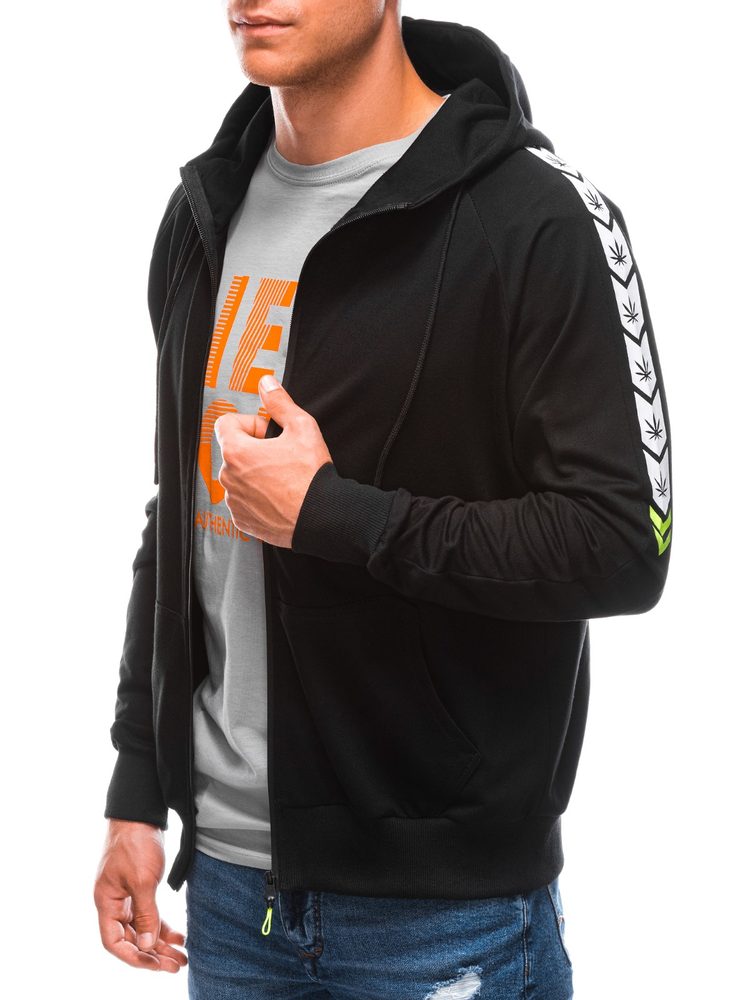 Mikina je vyrobena z příjemného a měkkého materiálu. Disponuje zapínáním na zip a kapucí, jejíž velikost lze regulovat pomocí šňůrky. Součástí mikiny je potisk po bocích. Model má přední kapsy. Spodní část a rukávy jsou zakončeny lemem. Mikina je vhodná pro běžné nošení. Doporučujeme ji kombinovat s kalhotami, případně džíny z naší nabídky.