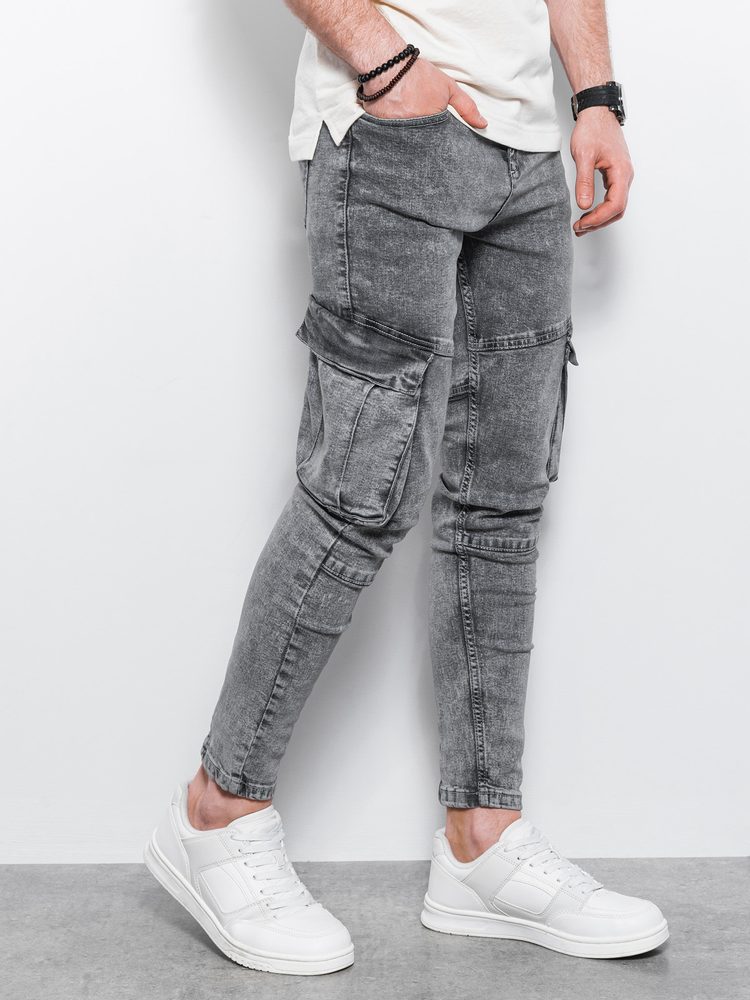 Ombre Clothing Šedé rifle s bočními kapsami P1079