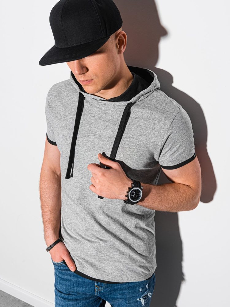 Ombre Clothing Trendové šedo-melírované tričko s kapucí S1376