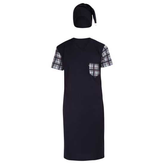 Pánská noční košile vyrobená ze 100% bavlny, má krátký rukáv a pohodlný střih, součástí balení je také spací čepice.